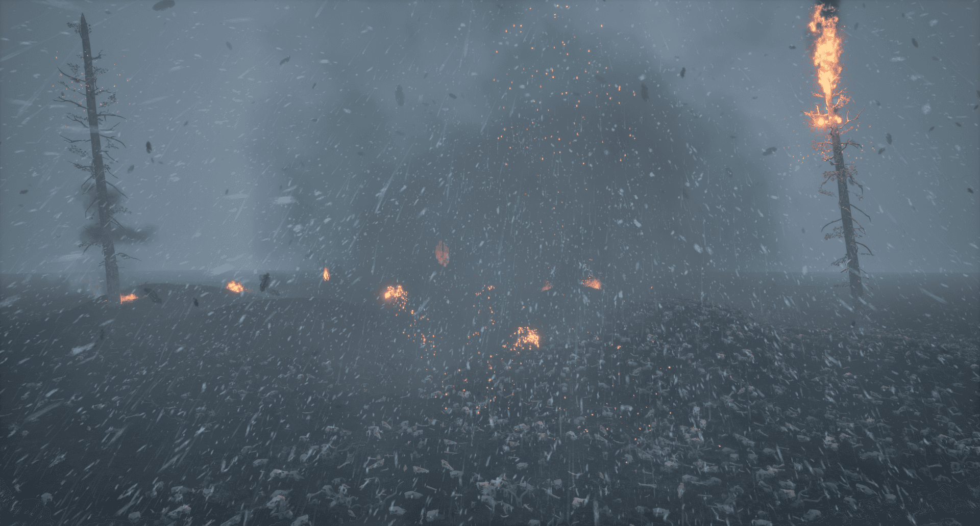 We wanted to showcase the Dead Skull Island as a place where no life was left after the World War. Dead Skull Island is a haunting testament to the ravages of war. Once a vibrant and thriving ecosystem, it has been reduced to a desolate wasteland where life has long since vanished. The island's landscape is marked by scorched earth and charred remains, with remnants of the past scattered among the ash. The skeletal remains of trees and buildings stand as eerie sentinels over the barren land, their once-lush forms now reduced to mere husks. The air is thick with the smell of burnt debris, and the silence is broken only by the occasional whisper of wind through the empty, lifeless expanse. The remnants of the great conflict that devastated the island linger, serving as a grim reminder of the cost of destruction and the fragility of life.